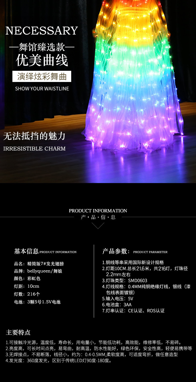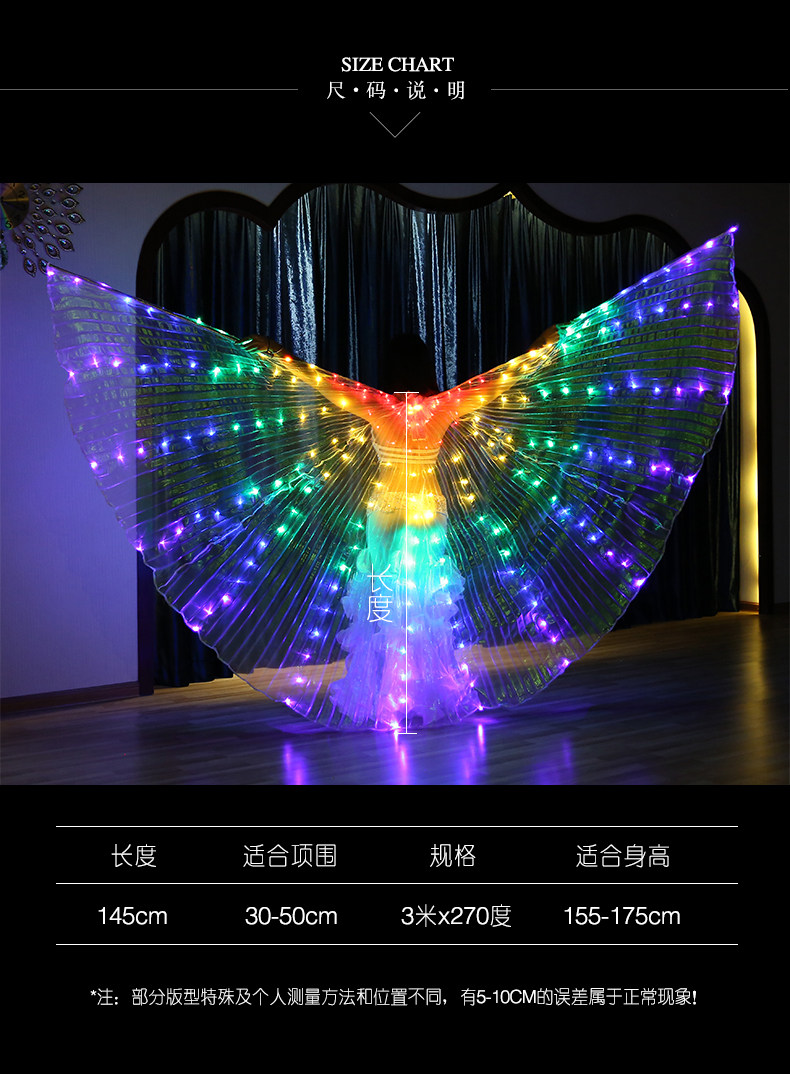 - Rainbow Led Belly Dance Isis Wing Dance Prop Belly Dance Cape