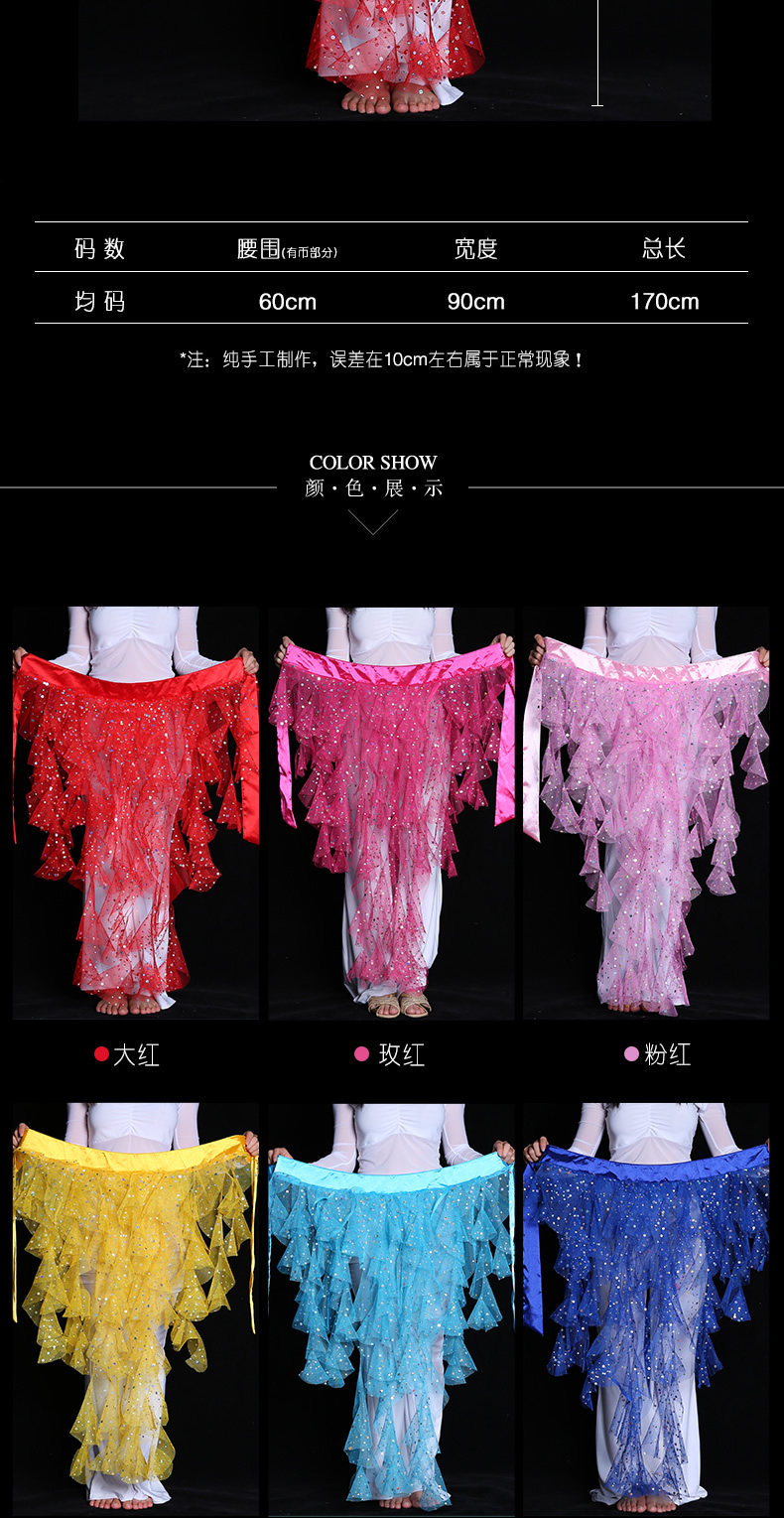 Item Name:Dancewear polyester Performance Belly Dance Hip Scarf For Ladies
